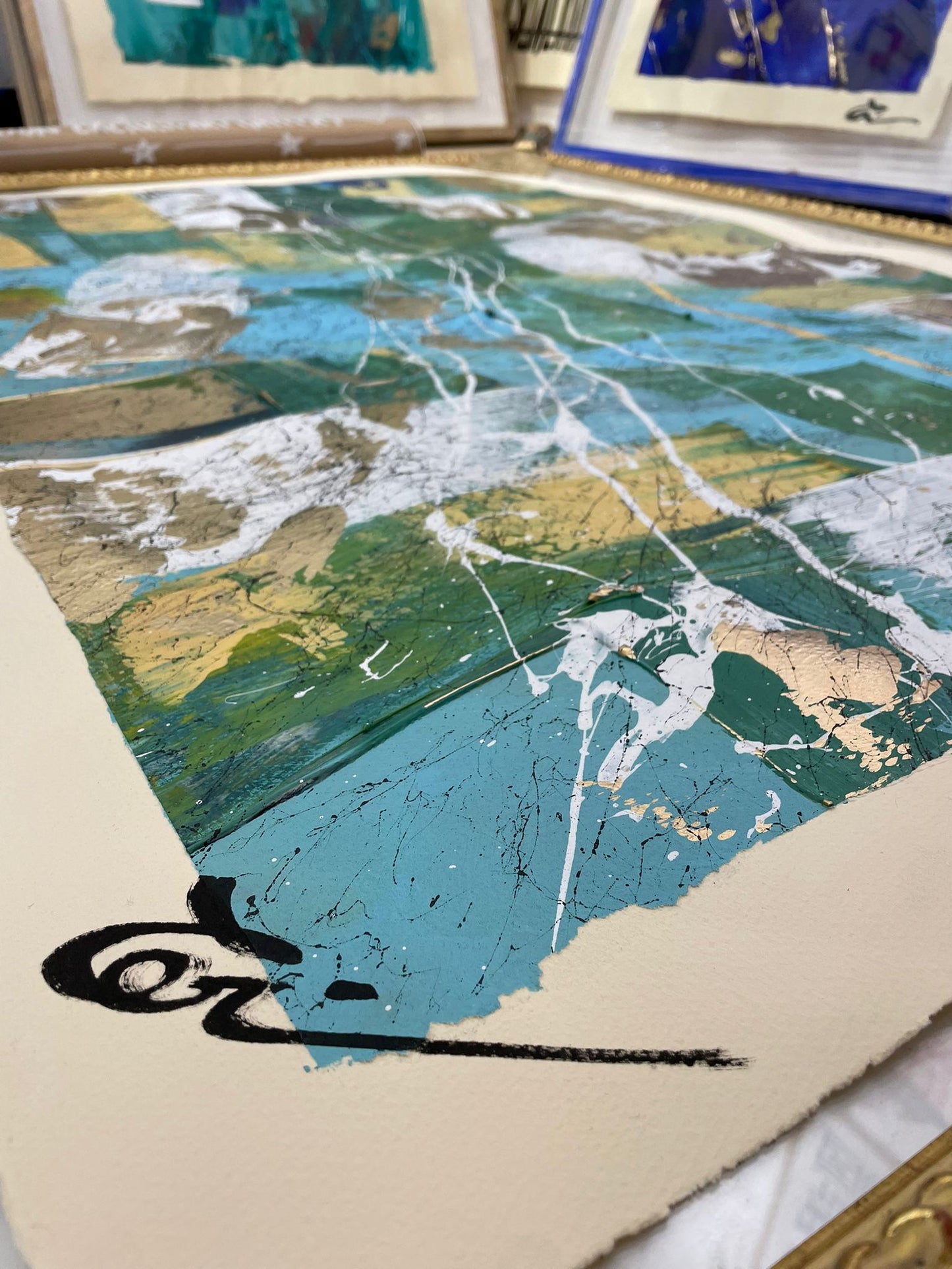 Inspired by the ocean, the sky, and the people he meets, his work radiates joy, love, and healing.