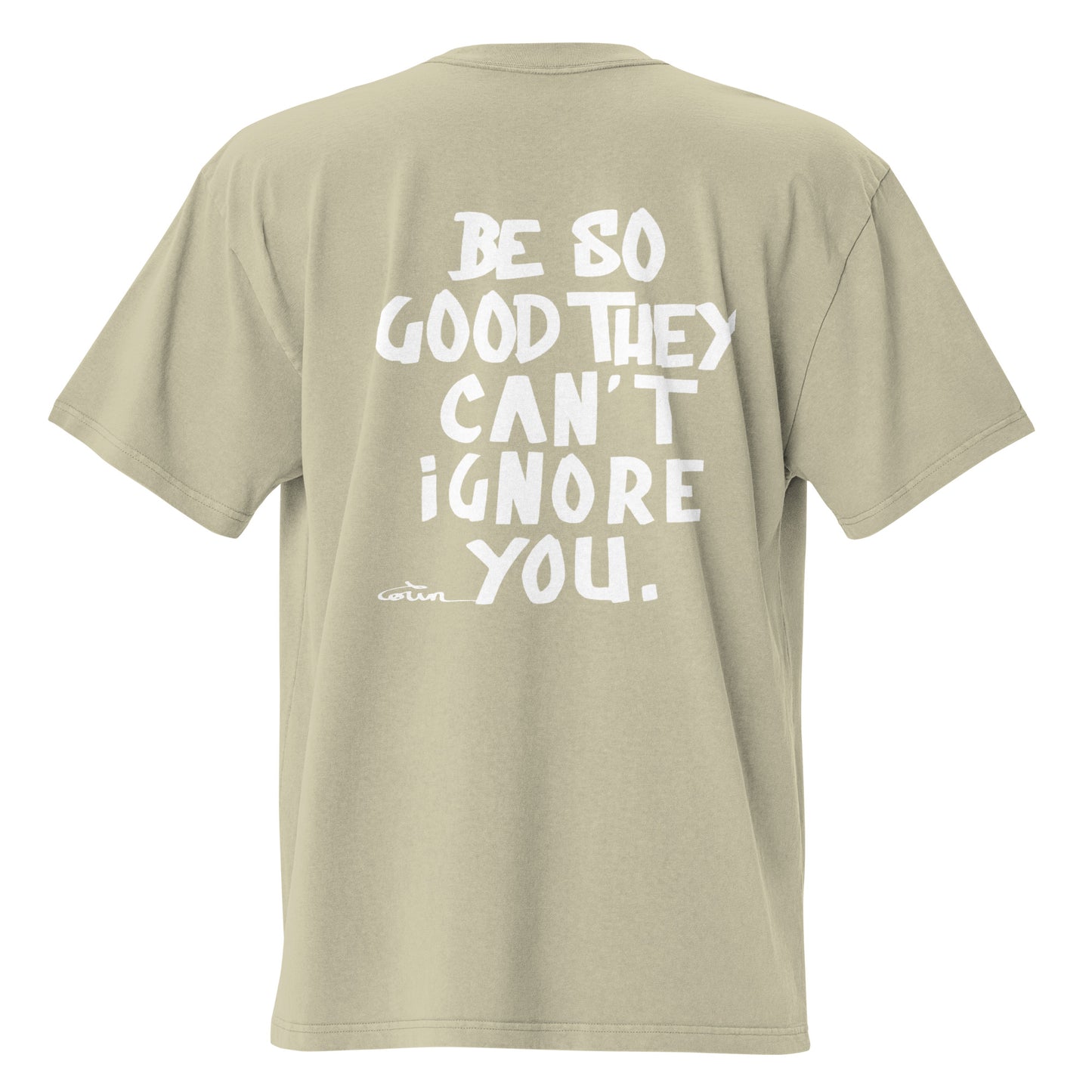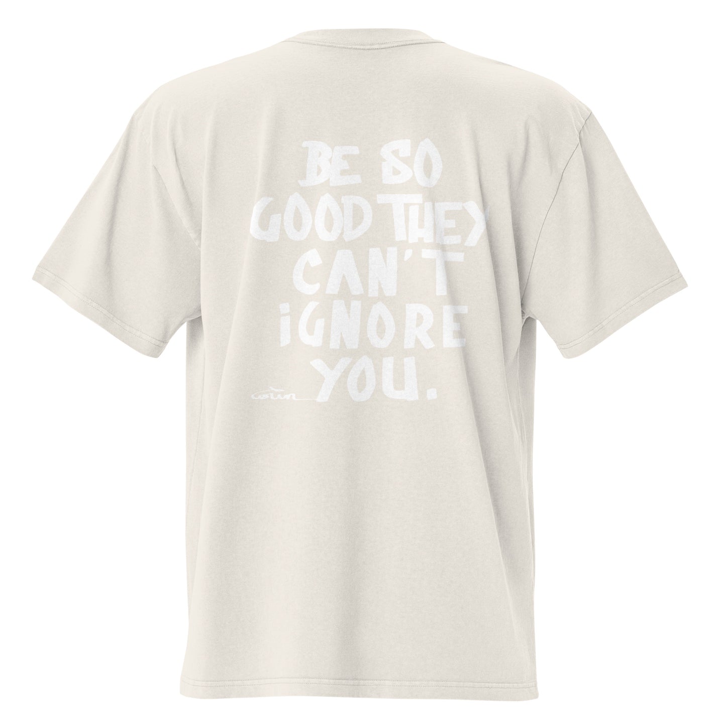 Oversized faded t-shirt - BE SO GOOD THEY CAN'T IGNORE YOU - White ink