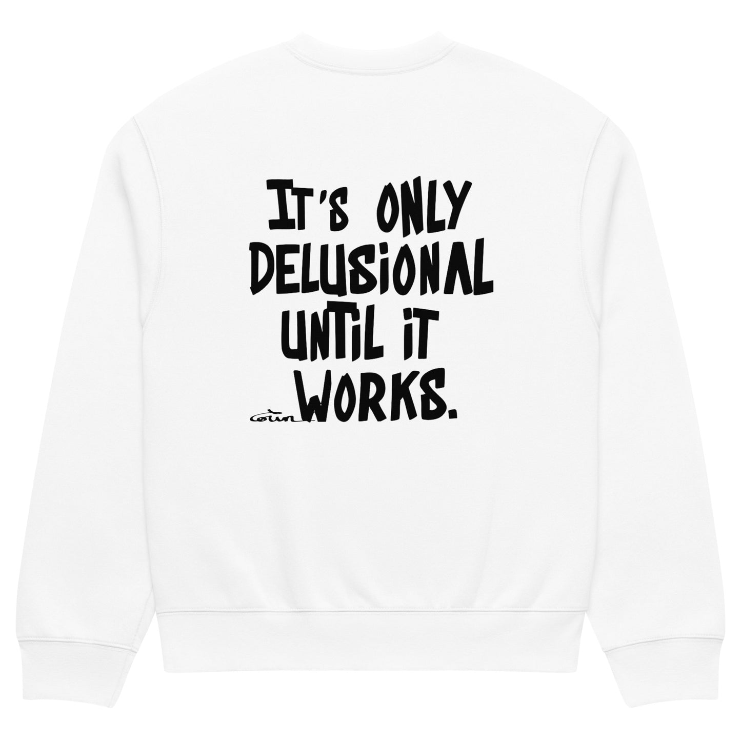 Oversized heavyweight sweatshirt - IT'S ONLY DELUSIONAL UNTIL IT WORKS - Black ink