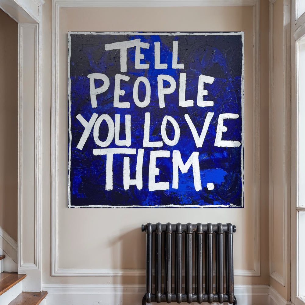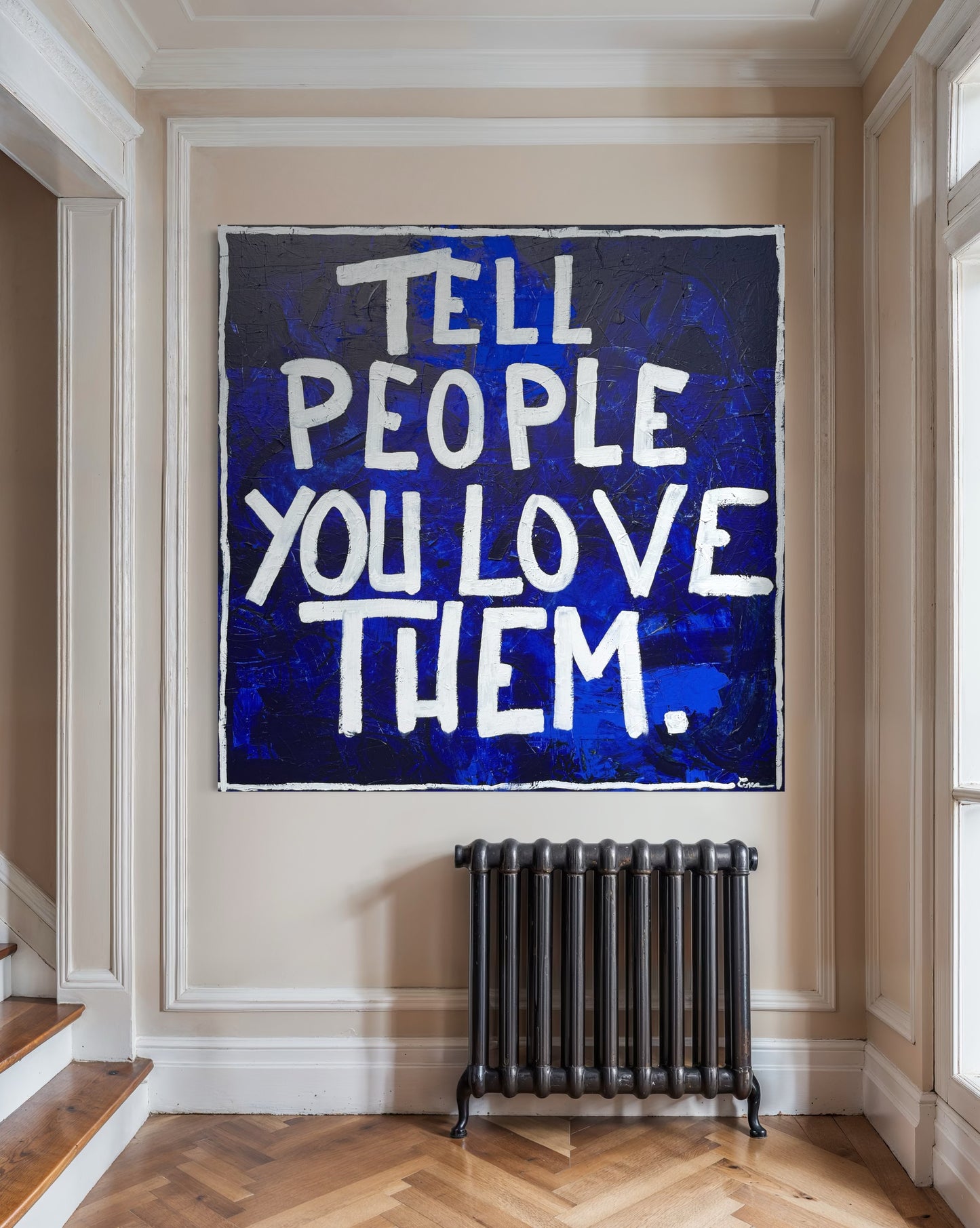 Painted in Barcelona, this monumental 200 × 200 cm (78.7 × 78.7 in) canvas is one of Corin’s signature large-scale manifestos — a bold reminder to bring love forward, loudly and fearlessly.