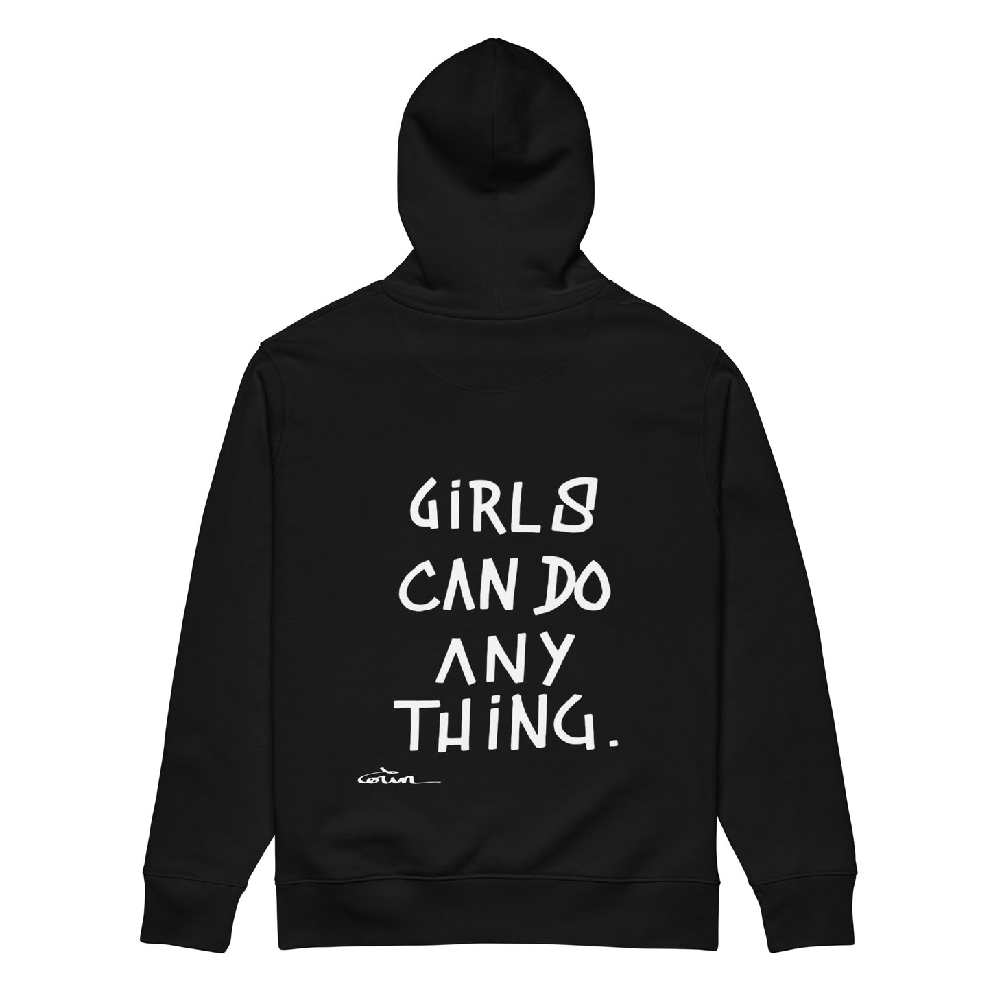 Unisex essential eco hoodie - GIRLS CAN DO ANYTHING - White ink