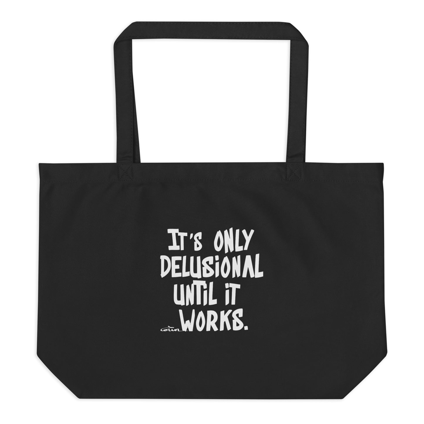 Large organic tote bag - IT'S ONLY DELUSIONAL UNTIL IT WORKS